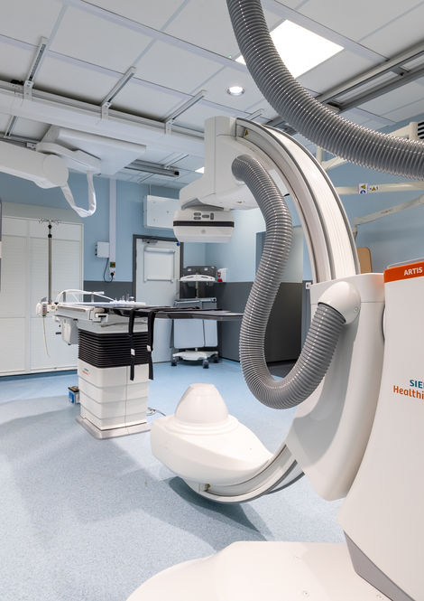 Brief project description: this project comprised of the alteration and refurbishment of the Cath Lab and adjacent areas. Works included; constructing temporary Hoard fast hoarding, alterations to existing layout to include redecoration, new flooring, new ceiling tiles and associated fixtures and fittings to all areas, safe isolation and strip out existing services and supply and install new, recover roofing and the installation of AHU and Chillers to both Cath Lab and Gamma Unit.